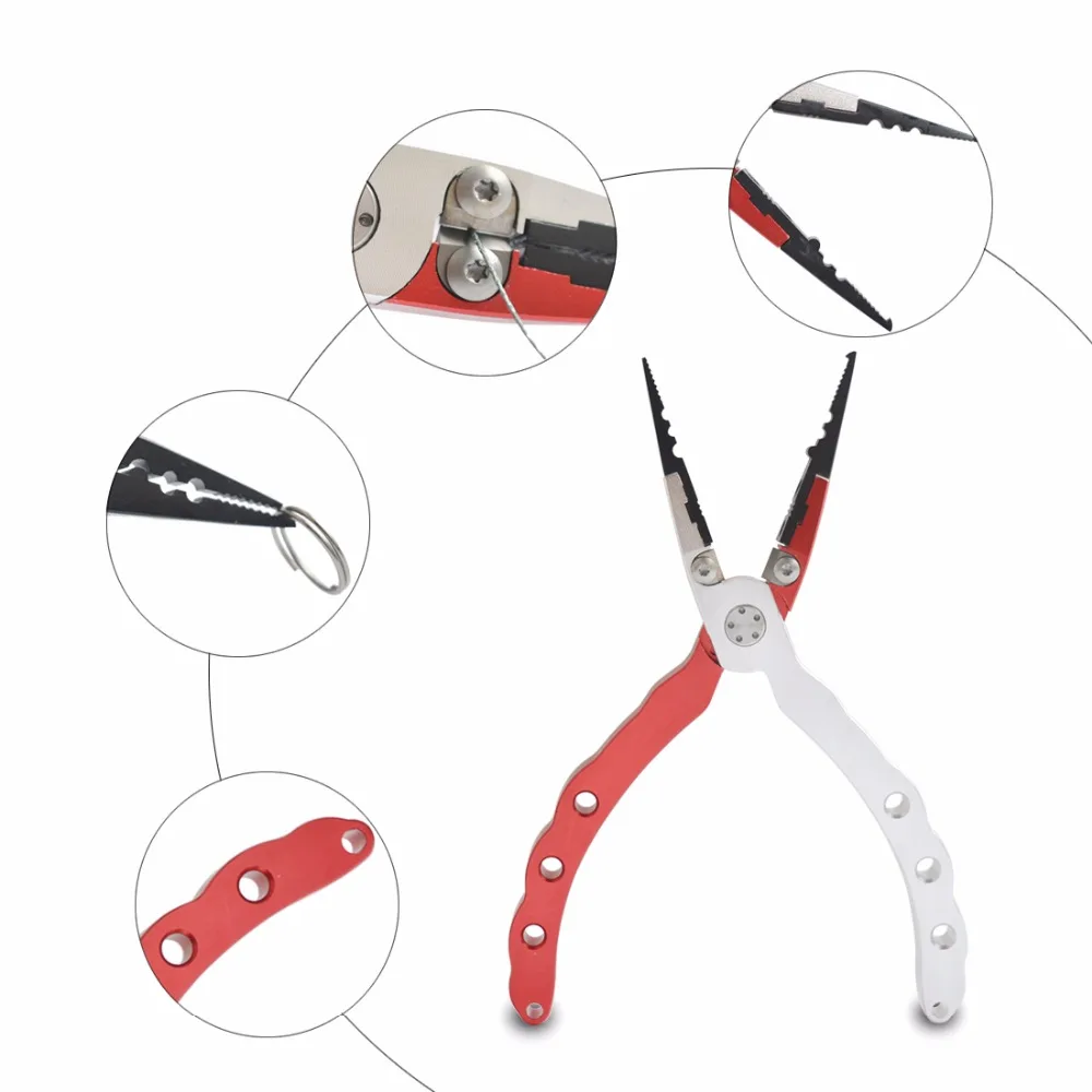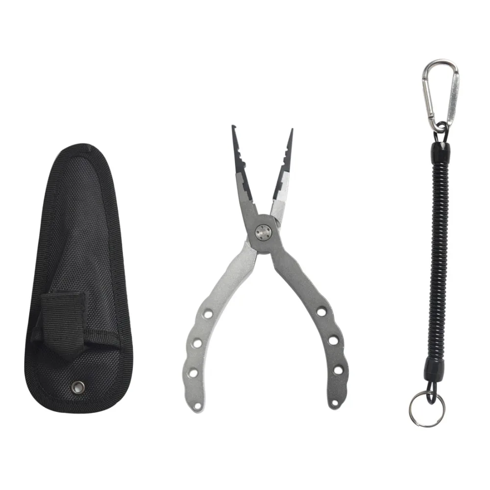 New Aluminum Alloy Fishing Pliers Split Ring Cutters Fishing Holder Tackle with Sheath & Fishing li